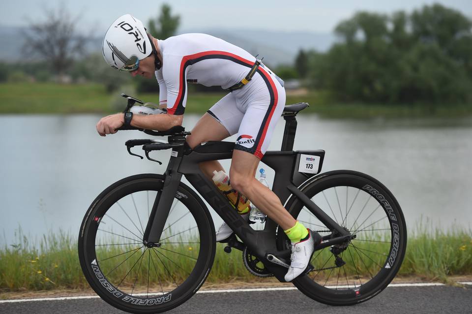 De wissel verliep vlot en na 4 minuten zat ik op de fiets. Het fietsparcours was 3 ronden van 58 km en een stuk van 10 km naar Boulder centrum. Per ronde zaten er 2 klimmen in , niet super zwaar want alles kan op de grote plateau en je kan uzelf eens recht zetten want die TT houding is nu ook weer niet super gezellig voor 180km.