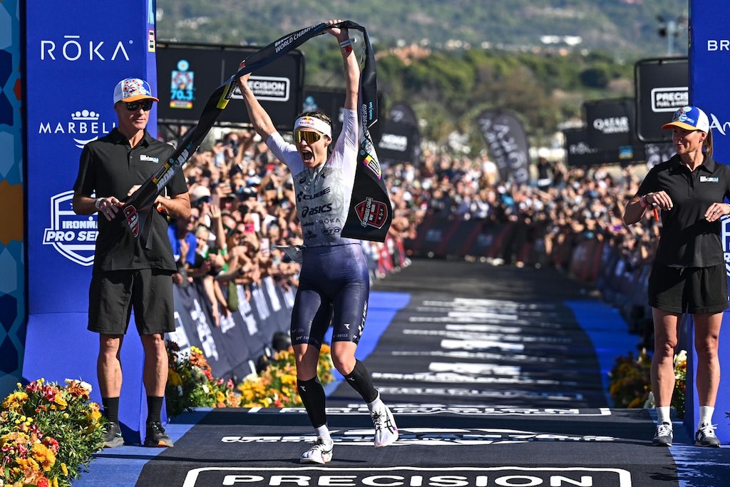 Lucy Charles-Barclay werd voor de tweede keer wereldkampioene 70.3 Ironman in Marbella in 4u14’54. De Amerikaanse Taylor Knibb, die de laatste drie WK’s won, werd tweede op 3’00. De Duitse Tanja Neubert, twee weken geleden nog top-10 in de WTCS Grand Final over de olympische afstand in Wollongong, pakte verrassend de derde plaats op 7’12 voor Georgia Taylor-Brown en Marjolaine Pierré. Hanne De Vet werd knap negende op 15’06.